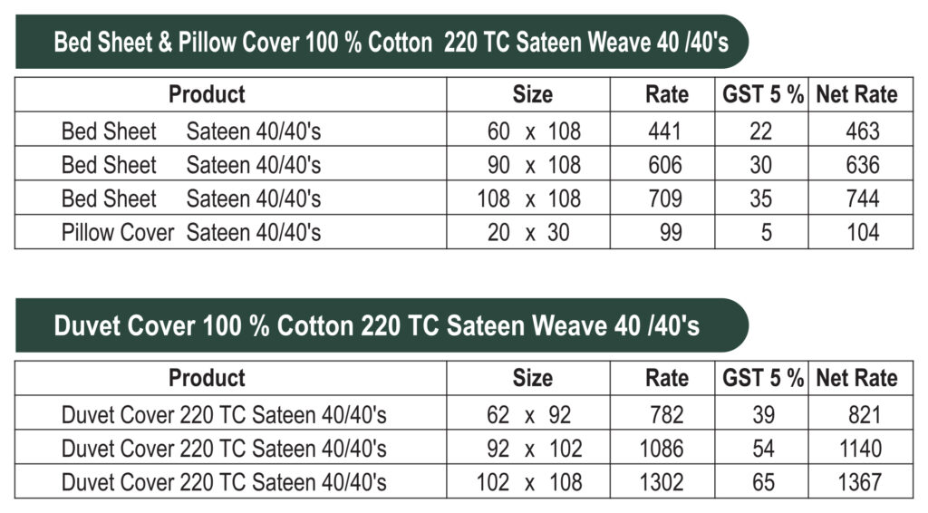 Our 220 TC Sateen Weave 40/40’s 100% Cotton Bed Linen is a perfect choice for hotels, resorts, and guest houses seeking comfort, durability, and elegant presentation at a practical price point. Made from 40s yarn in both warp and weft, this fabric offers excellent softness, breathability, and strength, ensuring reliable performance for everyday hospitality use.