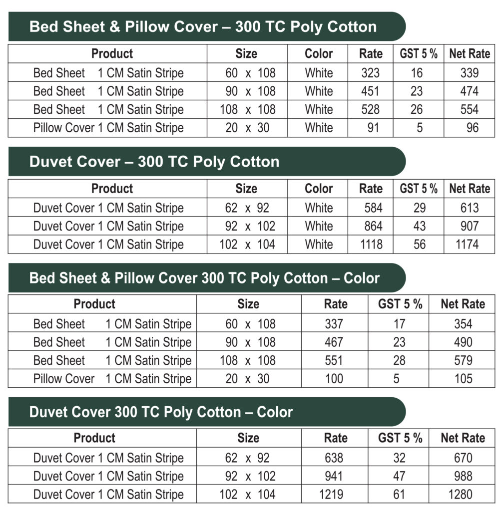 300 TC 1 CM Satin Stripe Poly Cotton 120 GSM Bed Linen