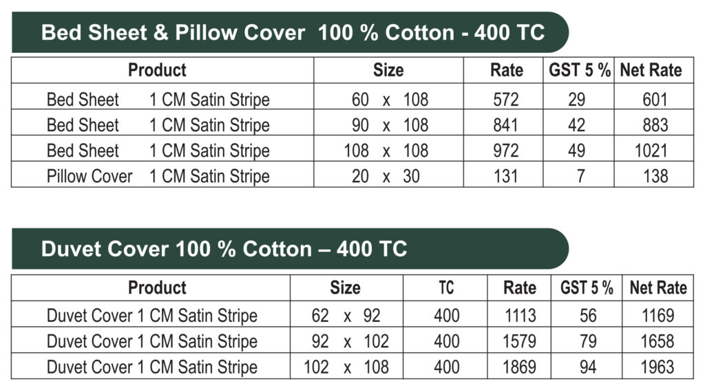 Our 400 TC 1 CM Satin Stripe 100% Cotton Bed Linen is the ultimate choice for luxury hotels, resorts, and premium service apartments that demand exceptional comfort, elegance, and durability. Woven from high-quality 60s yarn in both warp and weft, this fabric delivers superior softness, strength, and breathability, providing guests with a truly indulgent sleep experience.